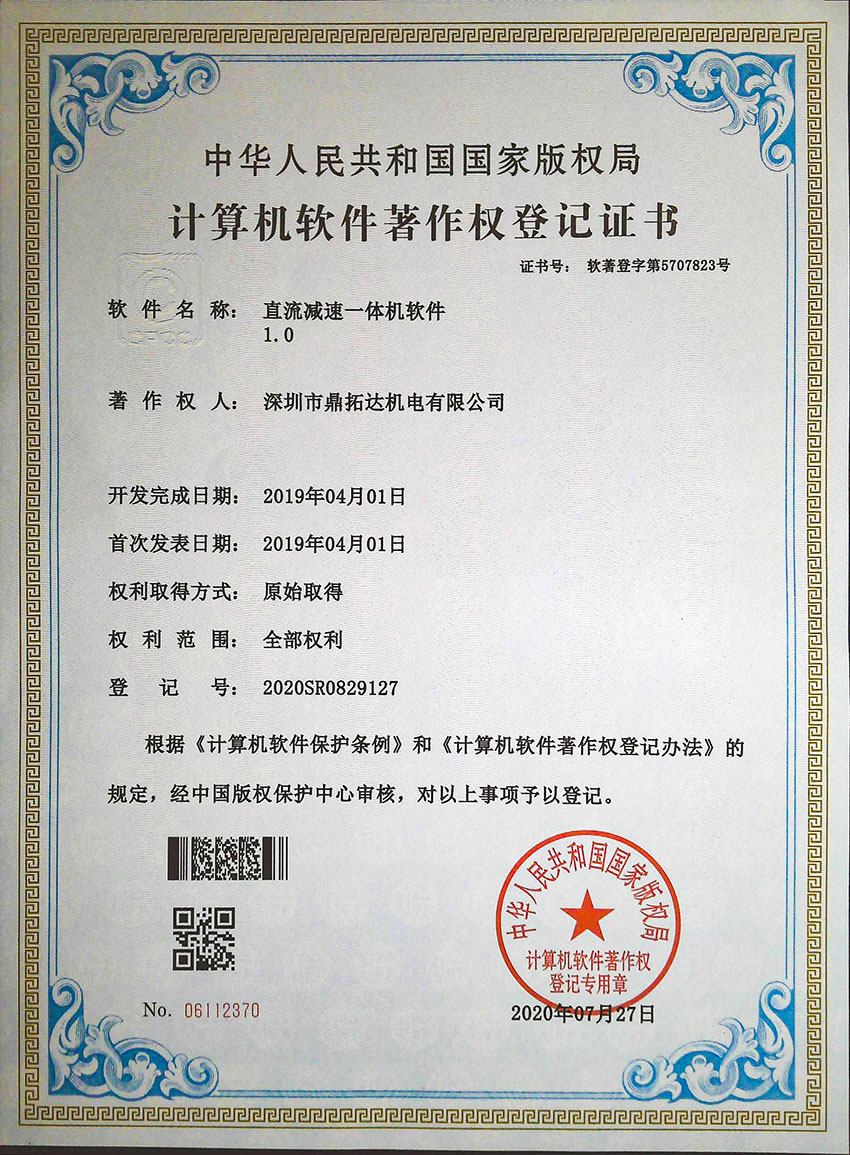 首頁->產品認證->直流減速一體機軟件證書